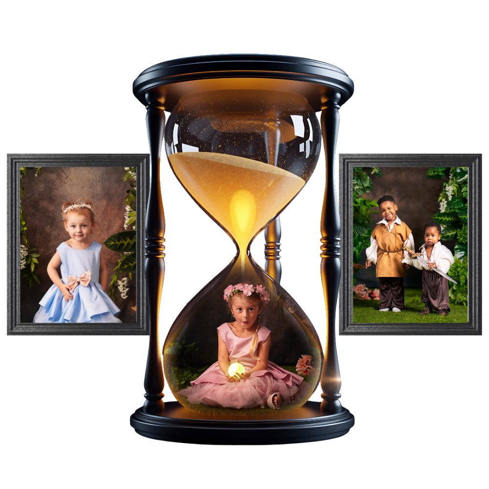 Een magische fotoshoot waar fantasie tot leven komt. Voorzien van outfits, sets en magie.